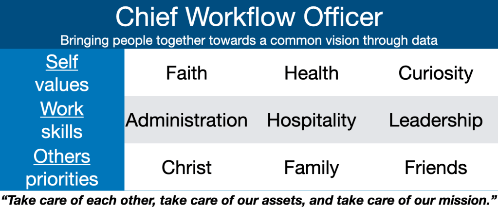 The next step to knowing yourself is understanding what you’re good at. I already knew the specific projects and qualities that had made me successful at work, but didn’t understand the underlying skills that applied to my life in general. I didn’t embrace these skills at home (it bit me several times) and didn’t harness them in other leadership positions (it limited me in volunteering). Rather than harness my talents, I tried to be someone else to fit in and everyone was the worse for it. I finally took a spiritual gifts survey at our church and instantly recognized the lost opportunities. We are all unique and your individual skills are how you can best contribute to a situation – celebrate them!